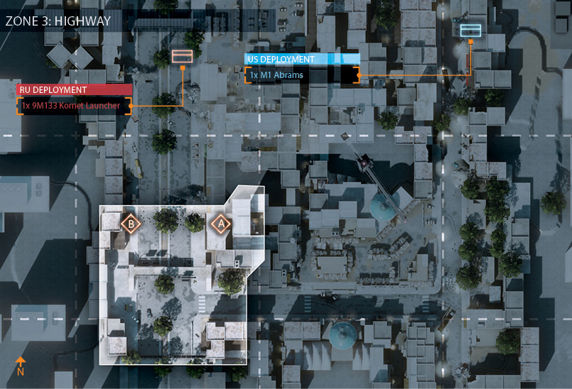 | ZONE3 | M1 ABRAMS×1 | ![]() | 9M133 KORNET×1 |