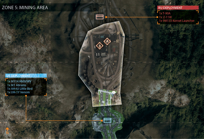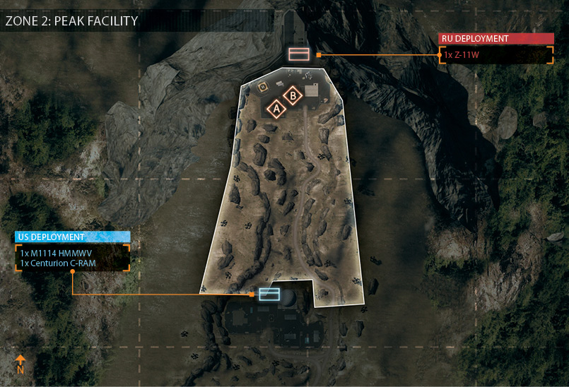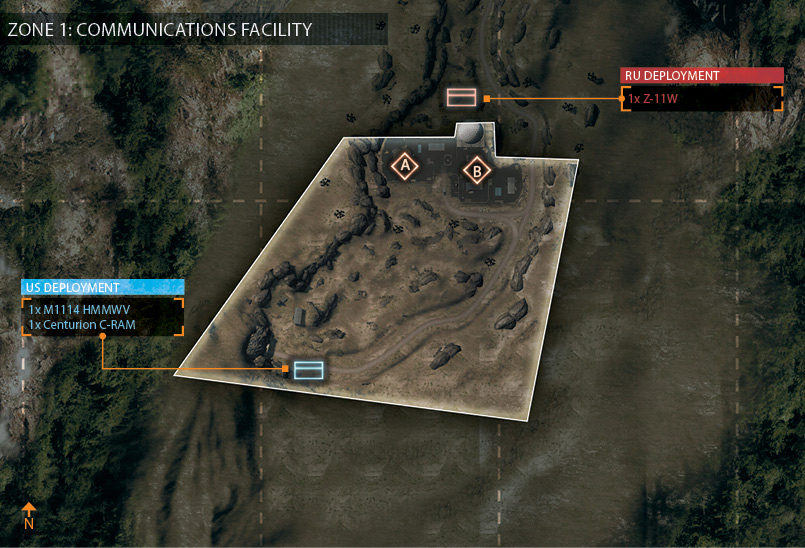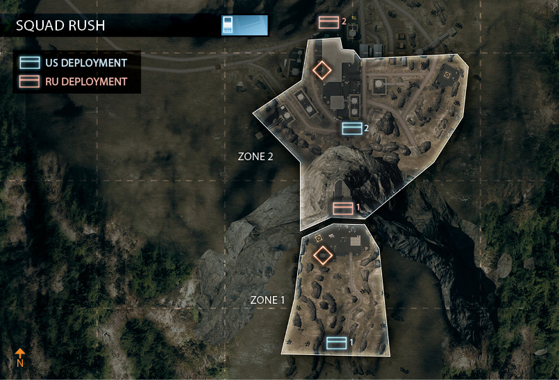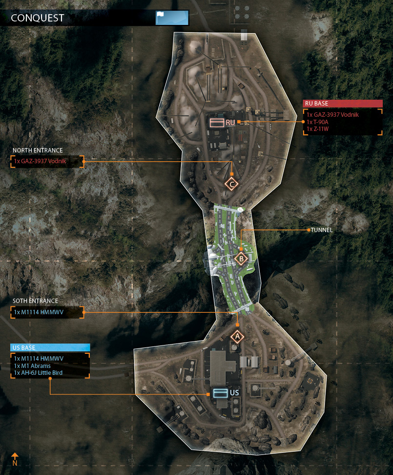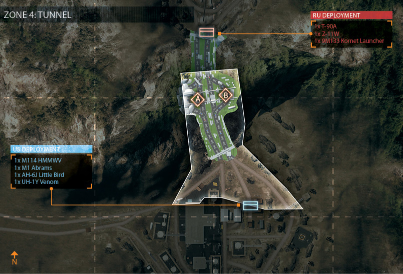 アメリカ軍とロシア軍がトンネルを挟んで向かい合った状態から始まる。 基本的にトンネルの拠点を巡って激戦が繰り広げられることになるが、双方に偵察ヘリがあり山越えが可能なため、 後方の拠点にも注意を払っておく必要がある。