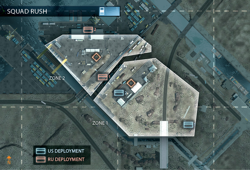 コンクエストのA拠点付近で戦う人気の高いマップ。 A拠点には旗のかわりにコンテナを積んだセミトレーラーが置かれており下から狙うことができる。 このマップは大まかに半身を隠せる程度の障害物があり射線がよく通るエリアとコンテナやブロックで射線があまり通らないエリアにわかれている。 全体的に障害物が多いマップであり、これらの障害物の使い方、対処のしかたが勝敗を分けるだろう。
