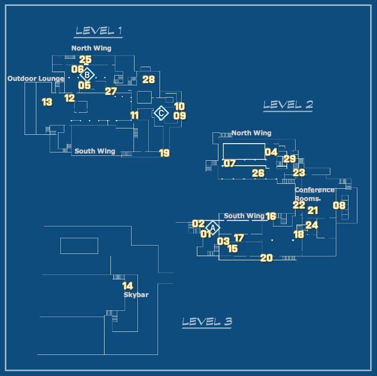Ziba tower:テヘラン市内の超高層ビルの屋上に作られたクラブハウス Donya fortress:詳細不明。開発者によれば丘の上の古い要塞を豪邸に改装したもの Operation925:テヘラン市内にある大企業のオフィス Scrap metal:詳細不明。片方のエリアは廃墟、もう片方のエリアはまだ稼働中だった工場 てな感じの設定だったはず --